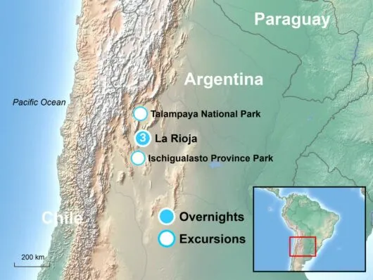 4 Days / 3 NightsThe Triassic Parks Tour includes a firsthand look at 3 major parks in Northwestern Argentina. In only 2 days, you will pass by 70 million years of geological history. In the Northern and Cuyo Region of Argentina, you will visit an assortment of exhibits from the Triassic Period: The Provincial Park Chiflón, Talampaya National Park, and Ischigualasto Provincial Park. Note: This is a tour extension. Please combine this tour with one of our full package tours.