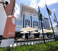 The 4-star beachfront Hotel Sonata de Iracema is located on Iracema Beach near downtown Fortaleza. Guests can hit the white sand beach or visit nearby museums and shops. There are 117 guest rooms in this hotel, with tile floors, air conditioning, LCD cable TV, ocean views, minibar, desk, electronic safe, telephone, and free Internet. The gourmet on-site restaurant serves local as well as international dishes, and there is also a rooftop pool with poolside bar and fitness center. Amenities include 24-hour room service, laundry service, and business center.