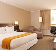 Located about 5 km (3 mi) to the north of downtown Temuco, Holiday Inn Express boasts 62 rooms and suites stock with free Wi-Fi access, a minimalistic decoration on white and amber hues, coffee makers, double glazed windows, and Cable TV. Complimentary breakfast is served every morning, either as a Continental or a Buffet style.