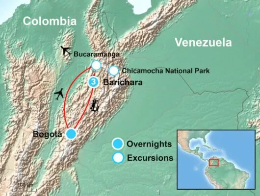 4 Days / 3 NightsSantander is an important mountainous region of Colombia, with incredibly beautiful landscapes, very friendly people, easy access from Bogotá and charming villages. It’s a perfect place for almost all kinds of adventure, honeymoons, and ecological trips. Note: This is a tour extension, combine this tour with one of our full package tours.
