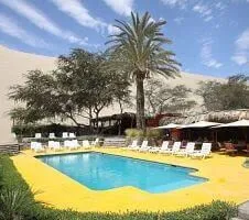 The Hotel Las Dunas Sun Resort is nestled in the desert oasis of Huacachina, near Ica in southern Peru. Here the sun always shines and sand dunes seem to stretch in all directions. Las Dunas Resort offers a restaurant, bar, gym, tennis court, volleyball court, sauna, 3 swimming pools, mini golf course, and game rooms. Guests can also enjoy dune buggy rides, sandboarding, and adventures out on the sand dunes. The guest rooms have air conditioning, telephones, safe deposit boxes, TVs, and garden views. Amenities include a 24-hour reception desk, gift shops, snack bar, babysitting, bicycle rentals, concierge, business center, room service, and laundry.